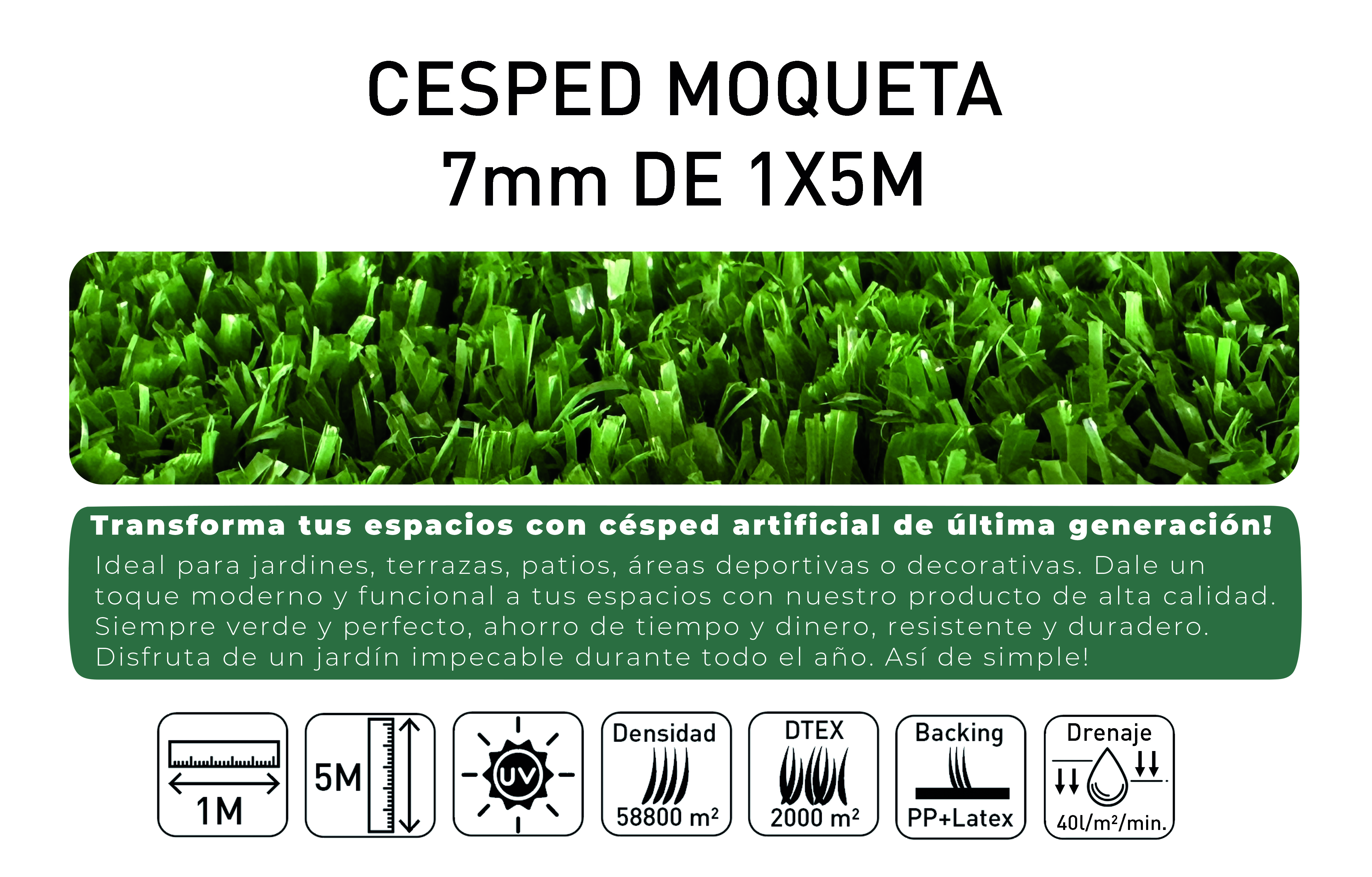 CESPED MOQUETA 7 MM 1×5 M