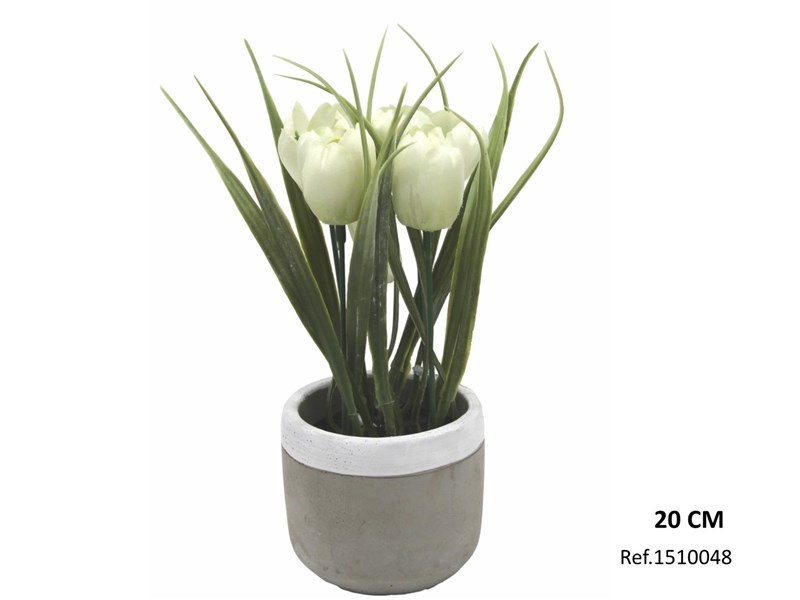 TULIPAN BLANCO EN MACETA CEMENTO 20CM